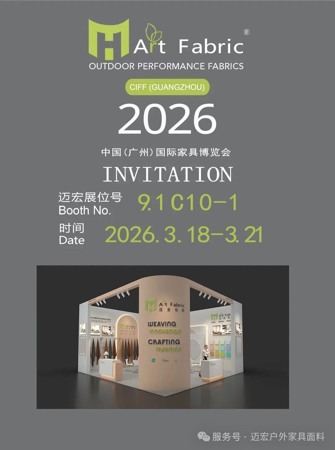 邁宏紡織(Art Fabric)—— 深耕戶外家具面料 17 年的源頭工廠,誠邀您蒞臨第 57 屆中國(廣州)國際家具博覽會!